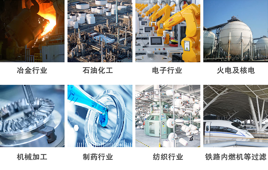 應(yīng)用領(lǐng)域 油除雜質(zhì),廣泛應(yīng)用于石油、化工、冶金、航空、電子、電力、制藥、環(huán)保、原子能、核工業(yè)、天然氣、耐火材料