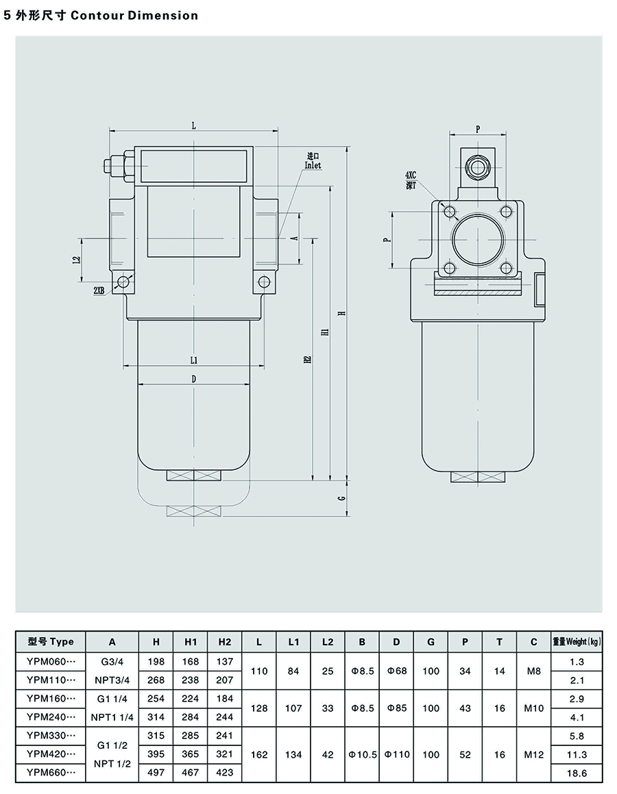 型號(hào) 壓力管路過(guò)濾器YPM060
